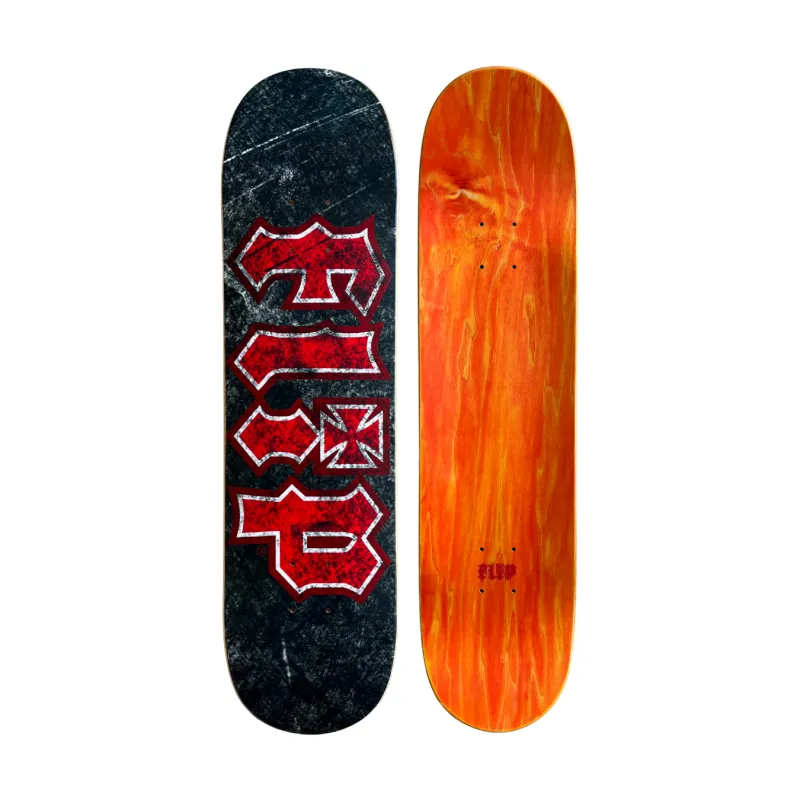 O shape Flip Thrashed Black carrega o logo marcante da marca em um fundo desgastado, com acabamento fosco e muita atitude.
